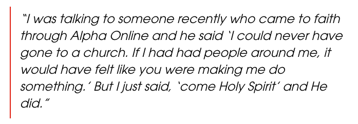 Pre-Covid, Melinda Dwight, National Director of Alpha Australia, was skeptical of the effectiveness of Alpha Online. She shares,